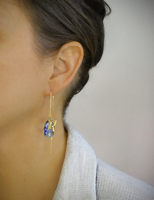 18K guldbelagt butterfly øreringe med safirdråber