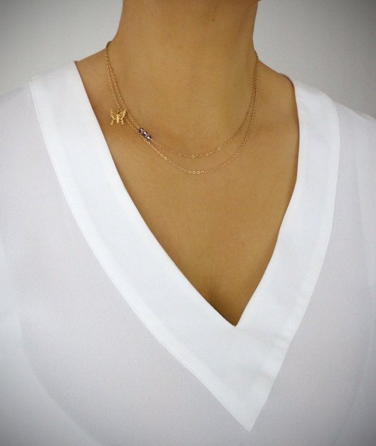 18K guldbelagt butterfly halskæde med dobbeltkæde