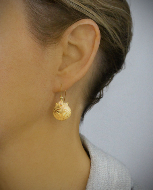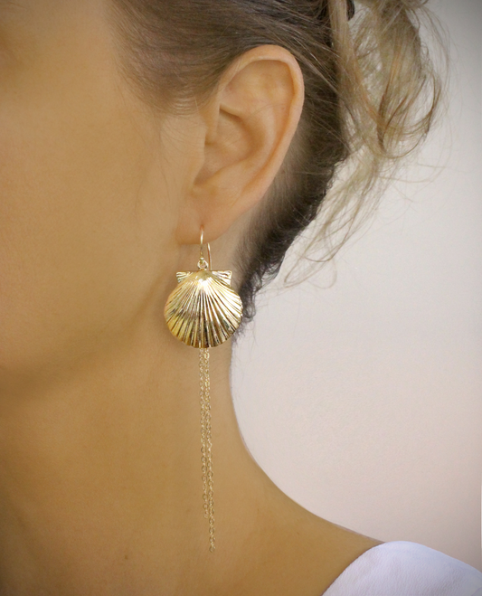 18K guldbelagt Seashell øreringe med hængende kæde - Store