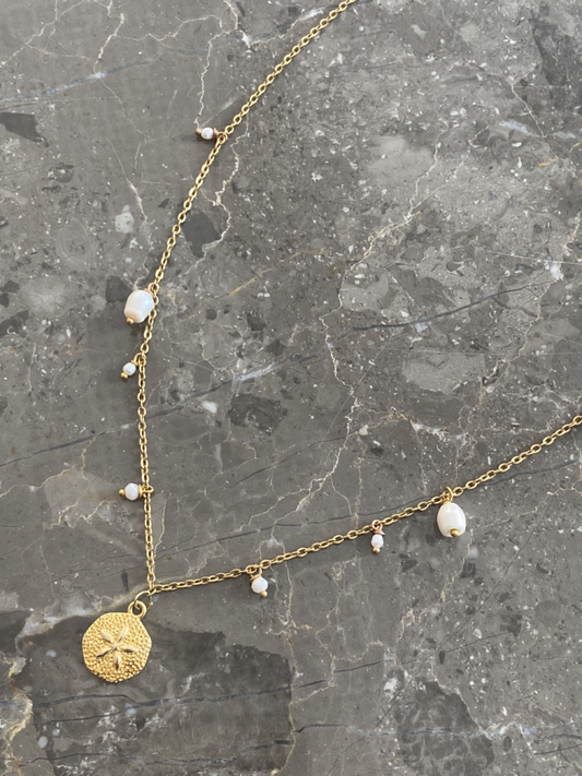18K guldbelagt Seashell dobbeltkæde - 25mm vedhæng